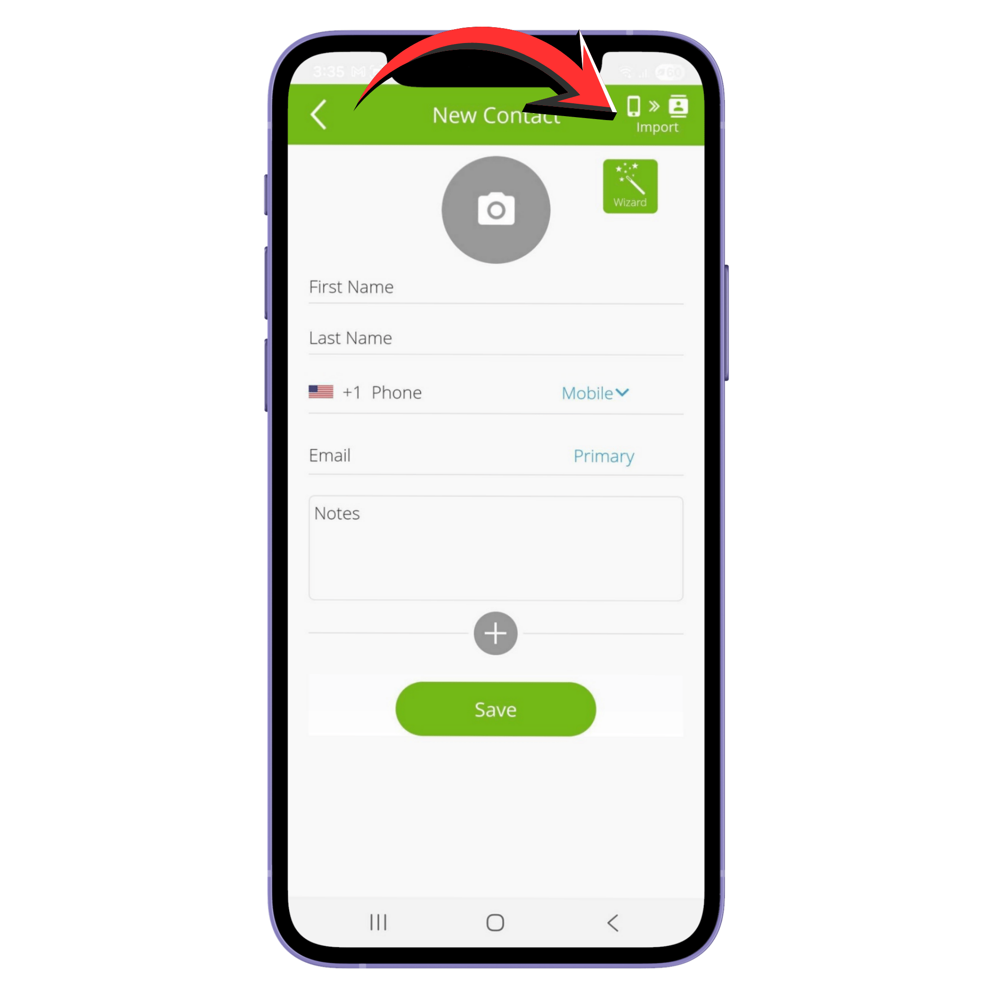 Note: On Android, you have the option to import one contact or multiple contacts at a time.